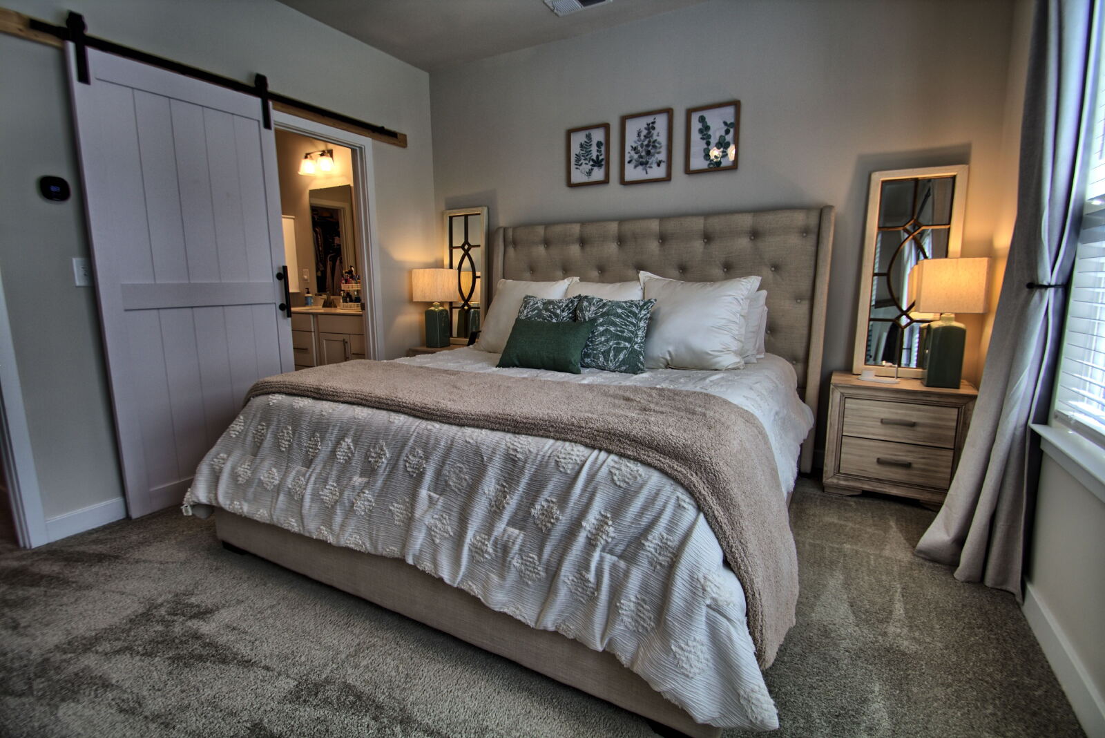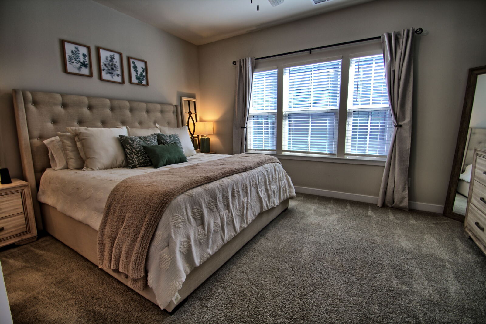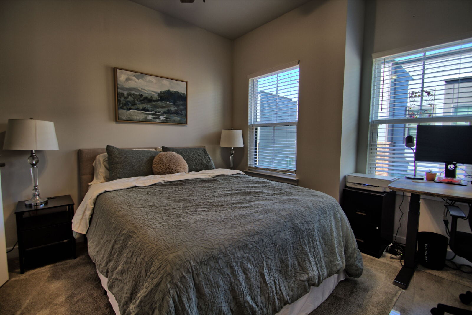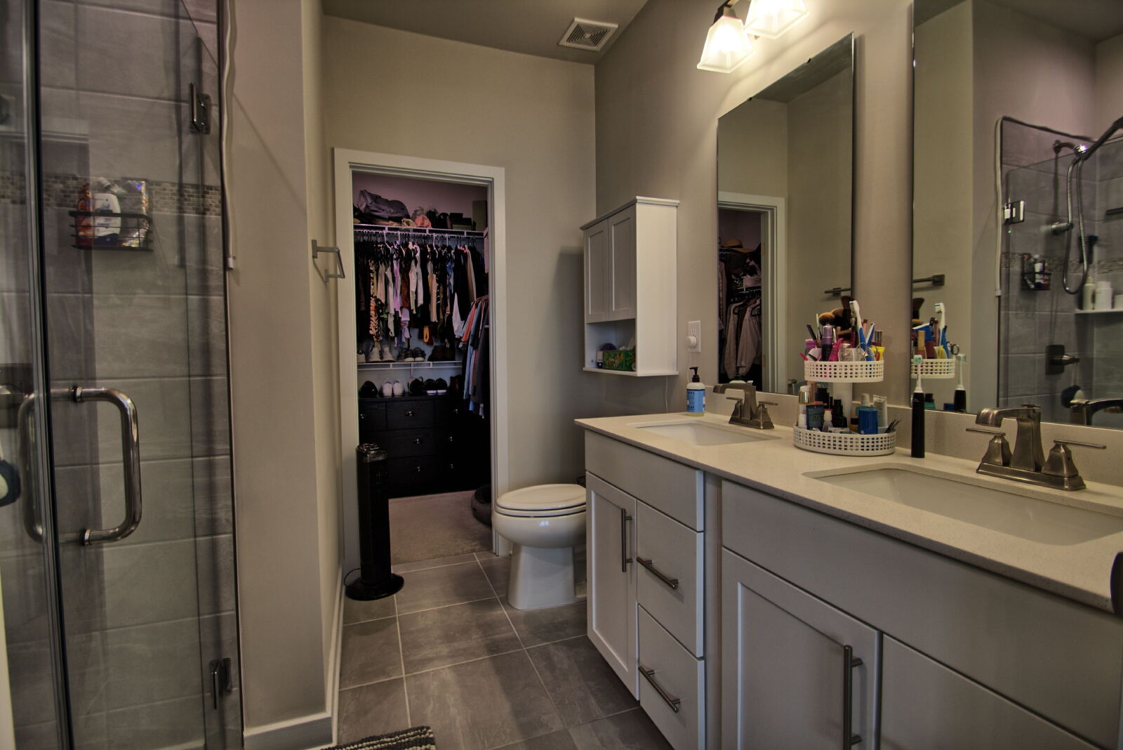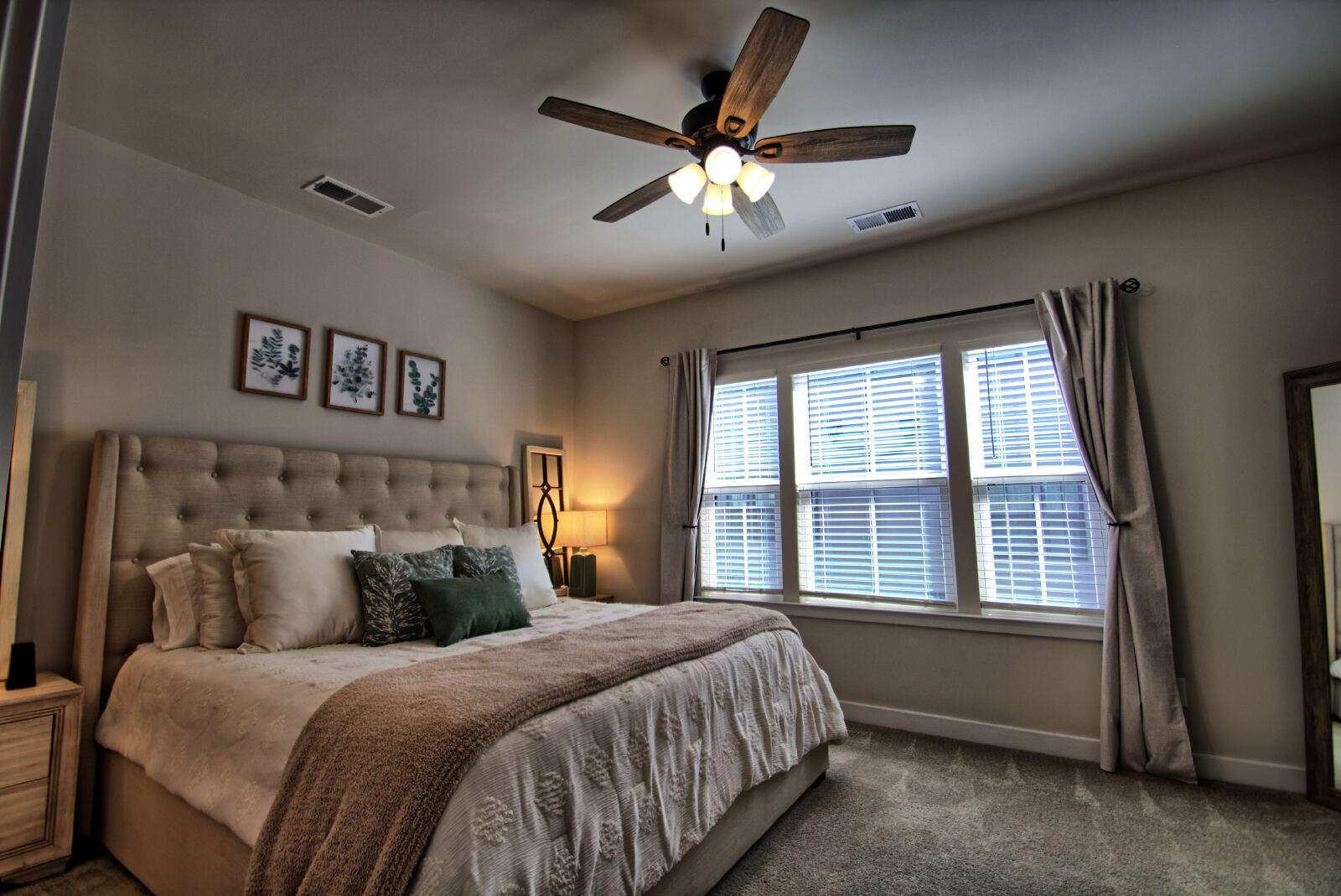 The inviting primary suite offers a ceiling fan, a large walk-in closet, and a spa-like bathroom with a walk-in shower and dual vanity sink. Enjoy your morning coffee or evening unwind on the private balcony just off the living area.